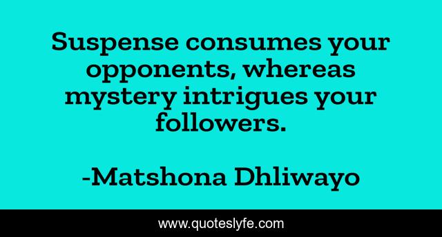 "Matshona Dhliwayo Quotes." Quoteslyfe.com, 2025. Fri. 05 Dec. 2025. <https://www.quoteslyfe.com/quote/Suspense-consumes-your-opponents-whereas-mystery-intrigues-257956>.