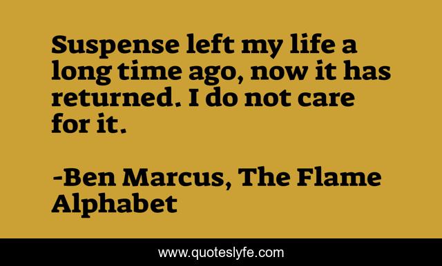 "Ben Marcus, The Flame Alphabet Quotes." Quoteslyfe.com, 2025. Fri. 05 Dec. 2025. <https://www.quoteslyfe.com/quote/Suspense-left-my-life-a-long-time-73201>.