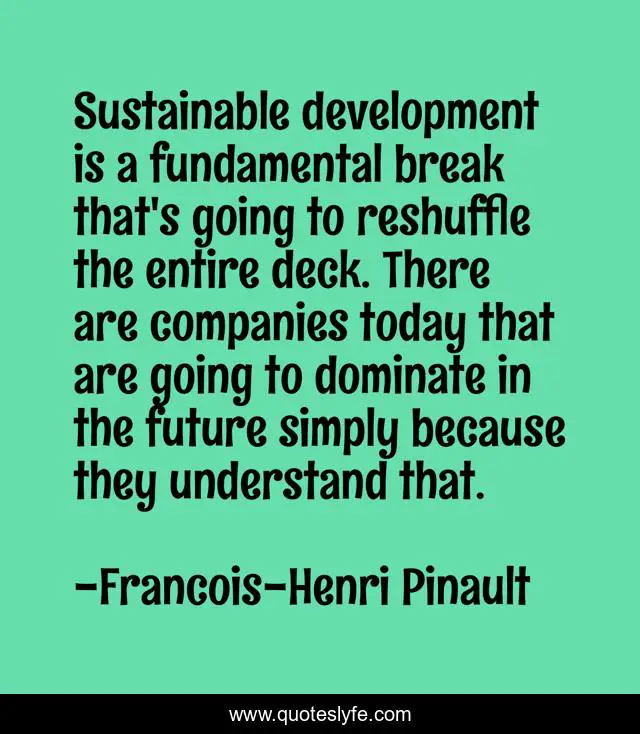 This page presents the quote "Sustainable development is a fundamental break that's going to reshuffle the entire deck. There are companies today that are going to dominate in the future simply because they understand that.". Author of this quote is Francois-Henri Pinault. This quote is about development, today,.