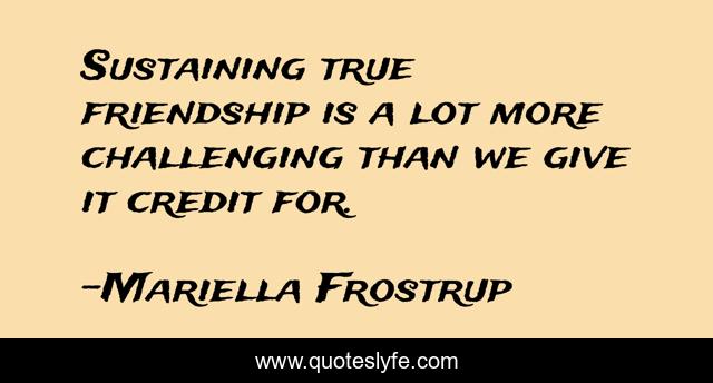 This page presents the quote "Sustaining true friendship is a lot more challenging than we give it credit for.". Author of this quote is Mariella Frostrup. This quote is about true friendship, credit,.