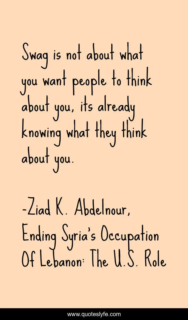 "Ziad K. Abdelnour, Ending Syria's Occupation Of Lebanon: The U.S. Role Quotes." Quoteslyfe.com, 2025. Sat. 06 Dec. 2025. <https://www.quoteslyfe.com/quote/Swag-is-not-about-what-you-want-232832>.