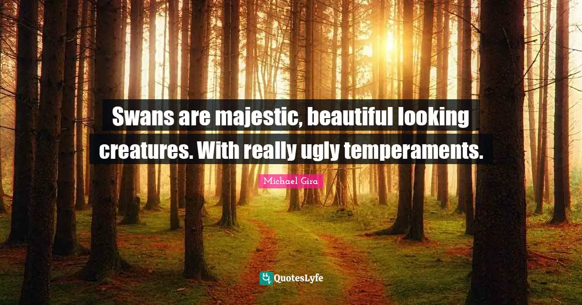 This page presents the quote "Swans are majestic, beautiful looking creatures. With really ugly temperaments.". Author of this quote is Michael Gira. This quote is about swans, creatures, beautiful, majestic, ugly,.