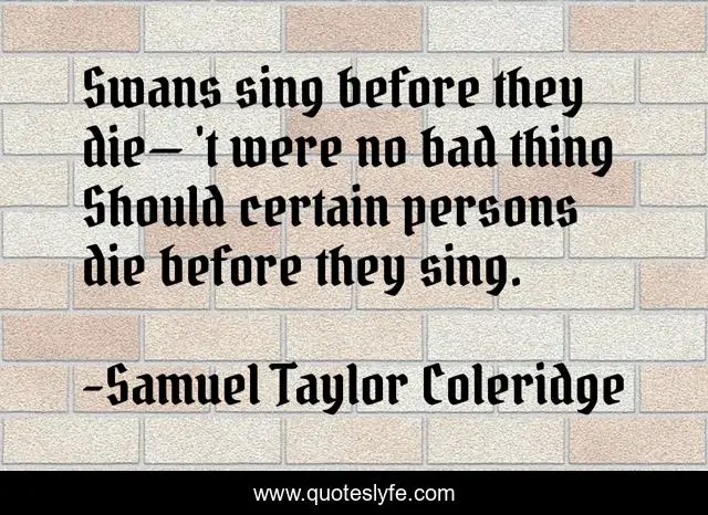 "Samuel Taylor Coleridge Quotes." Quoteslyfe.com, 2025. Mon. 08 Dec. 2025. <https://www.quoteslyfe.com/quote/Swans-sing-before-they-die-t-were-55548>.