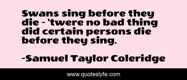 "Samuel Taylor Coleridge Quotes." Quoteslyfe.com, 2025. Sat. 06 Dec. 2025. <https://www.quoteslyfe.com/quote/Swans-sing-before-they-die-twere-no-271211>.