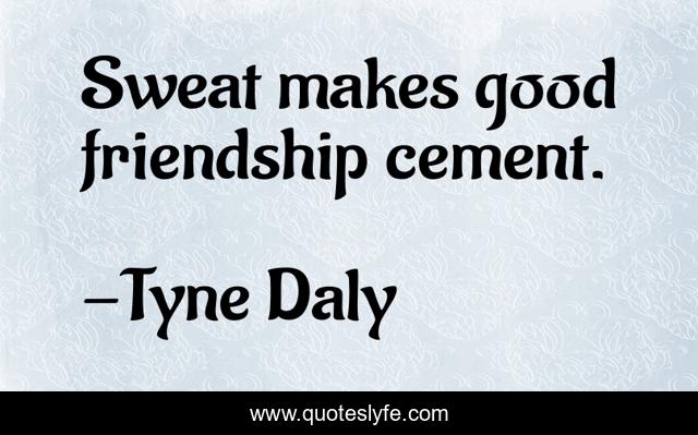 This page presents the quote "Sweat makes good friendship cement.". Author of this quote is Tyne Daly. This quote is about good, sweat, cement,.
