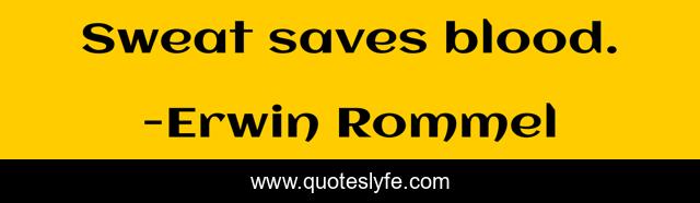 This page presents the quote "Sweat saves blood.". Author of this quote is Erwin Rommel. This quote is about saves, blood, sweat,.