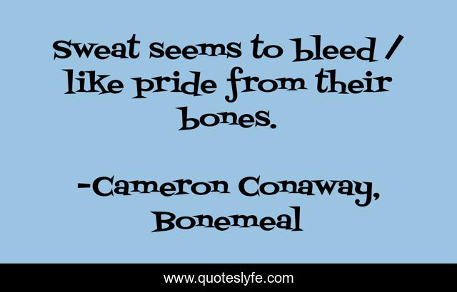 "Cameron Conaway, Bonemeal Quotes." Quoteslyfe.com, 2025. Sat. 06 Dec. 2025. <https://www.quoteslyfe.com/quote/Sweat-seems-to-bleed-like-pride-from-247779>.