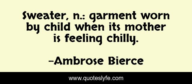 This page presents the quote "Sweater, n.: garment worn by child when its mother is feeling chilly.". Author of this quote is Ambrose Bierce. This quote is about feeling, mother, child,.