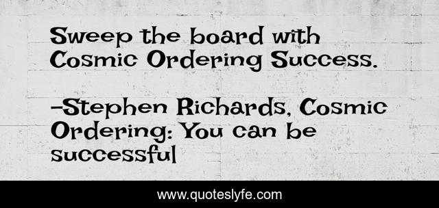 "Stephen Richards, Cosmic Ordering: You can be successful Quotes." Quoteslyfe.com, 2025. Fri. 05 Dec. 2025. <https://www.quoteslyfe.com/quote/Sweep-the-board-with-Cosmic-Ordering-Success-17012>.