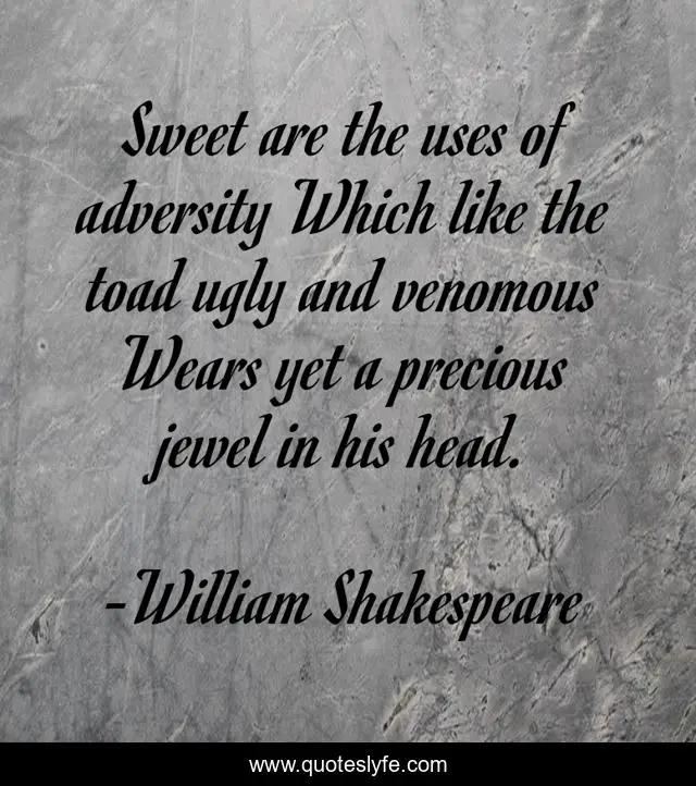 Sweet are the uses of adversity Which like the toad ugly and venomous Wears yet a precious jewel in his head.