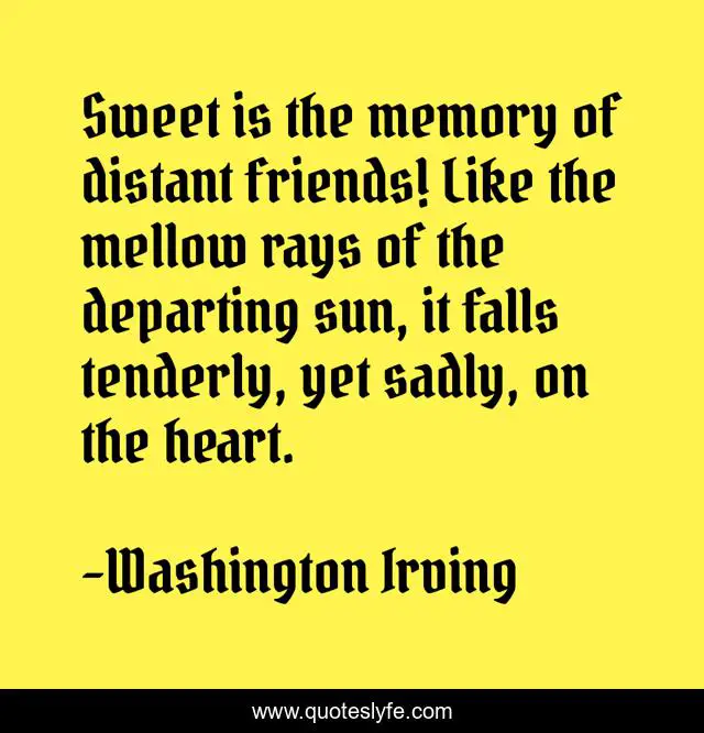 "Washington Irving Quotes." Quoteslyfe.com, 2025. Fri. 05 Dec. 2025. <https://www.quoteslyfe.com/quote/Sweet-is-the-memory-of-distant-friends-318861>.