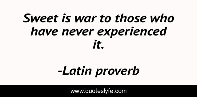 "Latin proverb Quotes." Quoteslyfe.com, 2025. Mon. 08 Dec. 2025. <https://www.quoteslyfe.com/quote/Sweet-is-war-to-those-who-have-278509>.