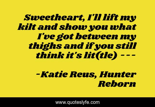 "Katie Reus, Hunter Reborn Quotes." Quoteslyfe.com, 2025. Mon. 08 Dec. 2025. <https://www.quoteslyfe.com/quote/Sweetheart-I-ll-lift-my-kilt-and-132233>.