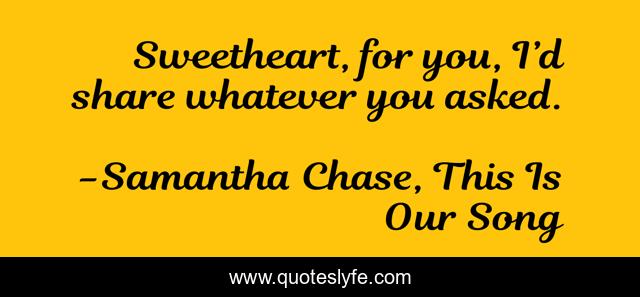 "Samantha Chase, This Is Our Song Quotes." Quoteslyfe.com, 2025. Fri. 05 Dec. 2025. <https://www.quoteslyfe.com/quote/Sweetheart-for-you-I-d-share-whatever-154753>.
