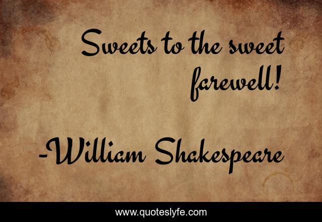 This page presents the quote "Sweets to the sweet farewell!". Author of this quote is William Shakespeare. .
