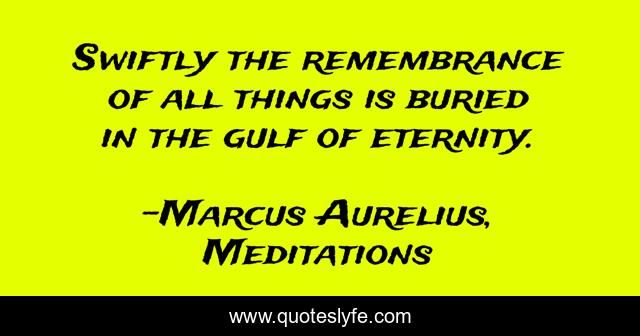 This page presents the quote "Swiftly the remembrance of all things is buried in the gulf of eternity.". Author of this quote is Marcus Aurelius, Meditations. This quote is about life, philosophy, life-and-death,.