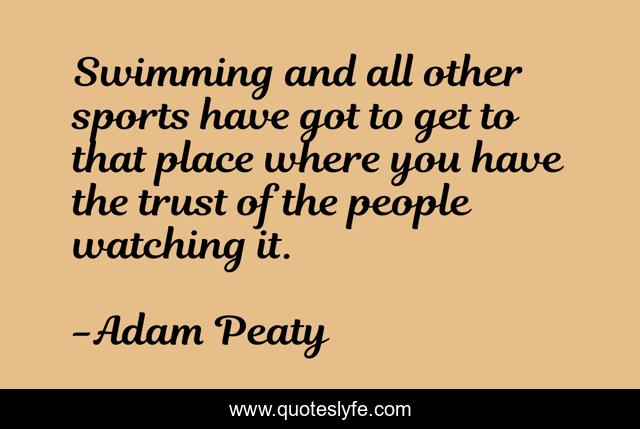 This page presents the quote "Swimming and all other sports have got to get to that place where you have the trust of the people watching it.". Author of this quote is Adam Peaty. This quote is about trust, people, swimming,.