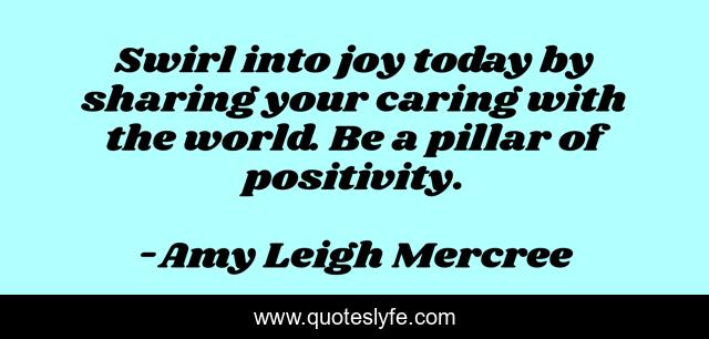 This page presents the quote "Swirl into joy today by sharing your caring with the world. Be a pillar of positivity.". Author of this quote is Amy Leigh Mercree. This quote is about caring, quotes-de-la-vida, amy-leigh-mercree, quotes-on-joy, quote-of-the-day, positivity, quotes-tumblr, inspirational, quote-about-life,.