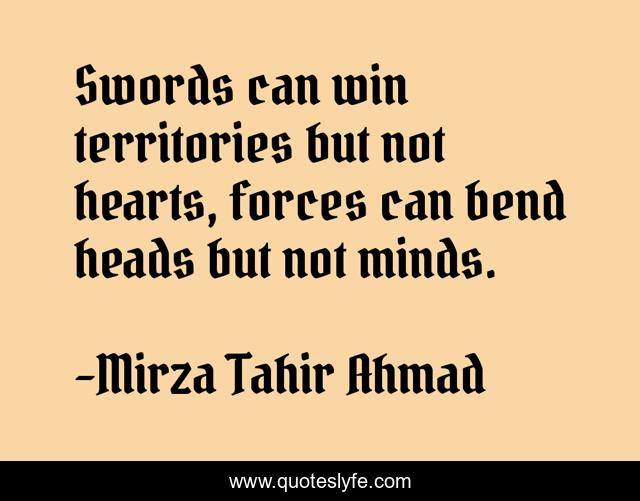 "Mirza Tahir Ahmad Quotes." Quoteslyfe.com, 2025. Sun. 07 Dec. 2025. <https://www.quoteslyfe.com/quote/Swords-can-win-territories-but-not-hearts-3897>.