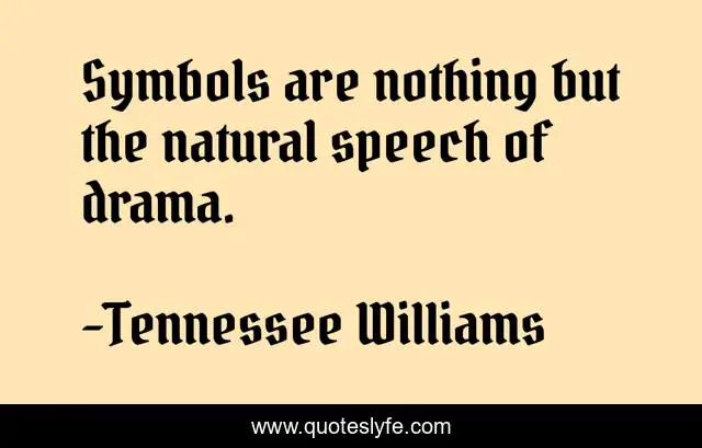 This page presents the quote "Symbols are nothing but the natural speech of drama.". Author of this quote is Tennessee Williams. .