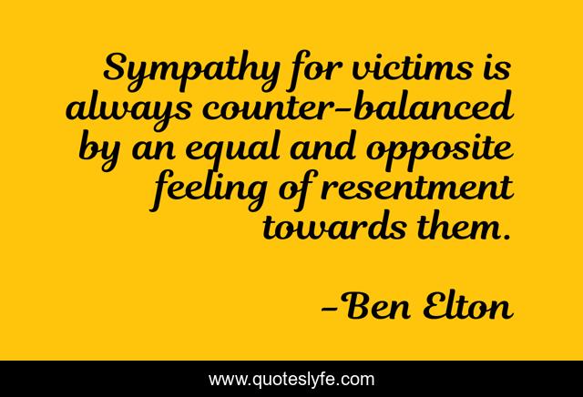 This page presents the quote "Sympathy for victims is always counter-balanced by an equal and opposite feeling of resentment towards them.". Author of this quote is Ben Elton. This quote is about always, feeling, equal,.