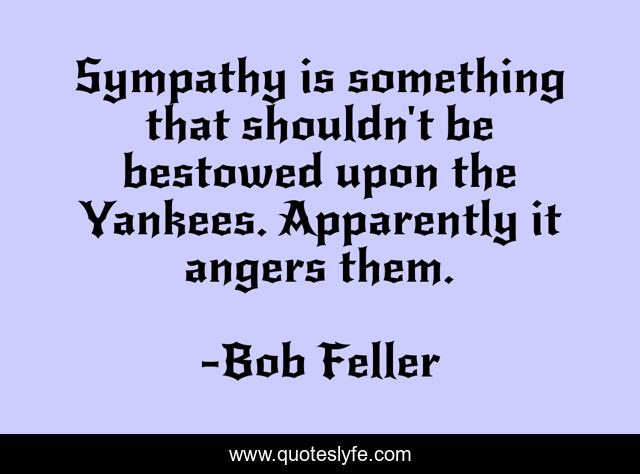 This page presents the quote "Sympathy is something that shouldn't be bestowed upon the Yankees. Apparently it angers them.". Author of this quote is Bob Feller. This quote is about yankees, something, bestowed,.