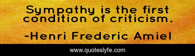 This page presents the quote "Sympathy is the first condition of criticism.". Author of this quote is Henri Frederic Amiel. This quote is about criticism, condition, first,.