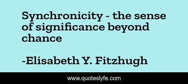 This page presents the quote "Synchronicity - the sense of significance beyond chance". Author of this quote is Elisabeth Y. Fitzhugh. This quote is about psychology, consciousness, spirituality, self-help, empath, awareness,.