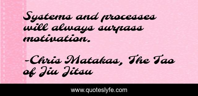 "Chris Matakas, The Tao of Jiu Jitsu Quotes." Quoteslyfe.com, 2025. Fri. 05 Dec. 2025. <https://www.quoteslyfe.com/quote/Systems-and-processes-will-always-surpass-motivation-47646>.
