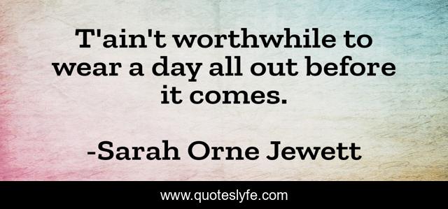 This page presents the quote "T'ain't worthwhile to wear a day all out before it comes.". Author of this quote is Sarah Orne Jewett. .