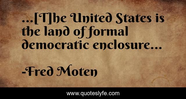 This page presents the quote "...[T]he United States is the land of formal democratic enclosure...". Author of this quote is Fred Moten. This quote is about fred-moten, enclosure, democracy,.