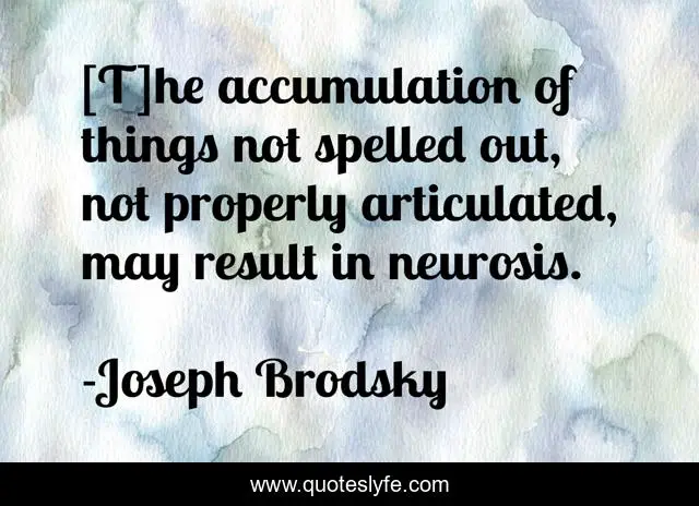 This page presents the quote "[T]he accumulation of things not spelled out, not properly articulated, may result in neurosis.". Author of this quote is Joseph Brodsky. This quote is about neurosis, language, speech, speaking, vocabulary,.