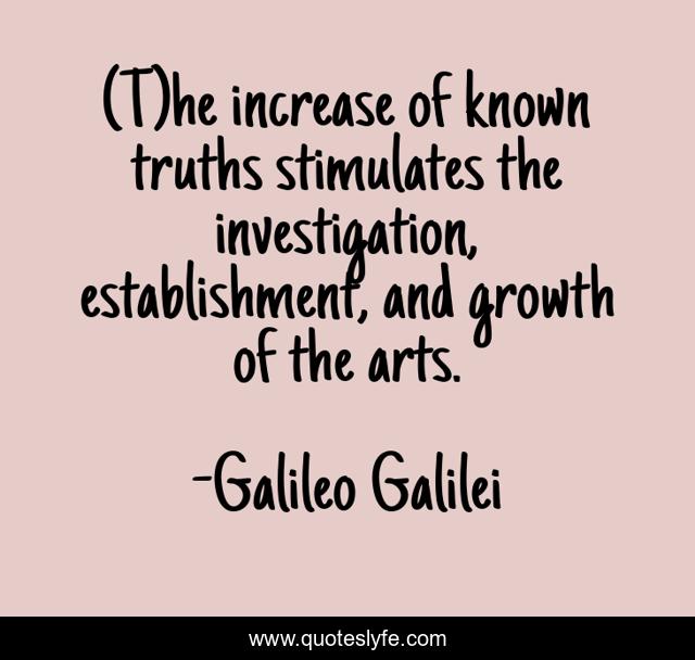 This page presents the quote "(T)he increase of known truths stimulates the investigation, establishment, and growth of the arts.". Author of this quote is Galileo Galilei. This quote is about science, life, art,.