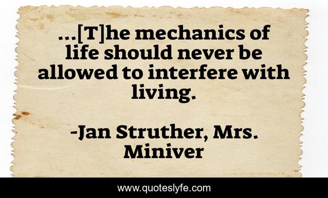 "Jan Struther, Mrs. Miniver Quotes." Quoteslyfe.com, 2025. Sat. 06 Dec. 2025. <https://www.quoteslyfe.com/quote/T-he-mechanics-of-life-should-never-115538>.