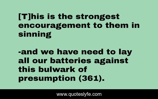 "and we have need to lay all our batteries against this bulwark of presumption (361). Quotes." Quoteslyfe.com, 2025. Sat. 06 Dec. 2025. <https://www.quoteslyfe.com/quote/T-his-is-the-strongest-encouragement-to-177900>.