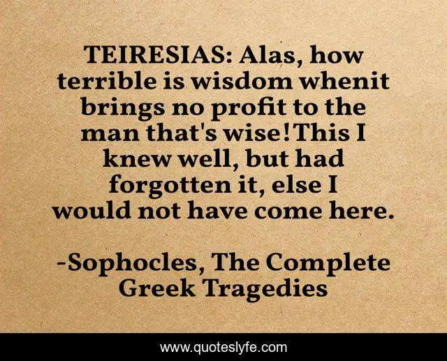 "Sophocles, The Complete Greek Tragedies Quotes." Quoteslyfe.com, 2025. Sat. 06 Dec. 2025. <https://www.quoteslyfe.com/quote/TEIRESIAS-Alas-how-terrible-is-wisdom-whenit-226222>.