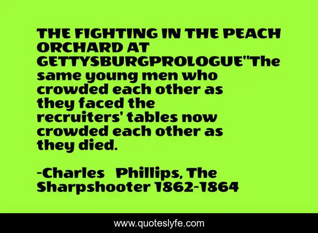 "Charles Phillips, The Sharpshooter 1862-1864 Quotes." Quoteslyfe.com, 2025. Sat. 06 Dec. 2025. <https://www.quoteslyfe.com/quote/THE-FIGHTING-IN-THE-PEACH-ORCHARD-AT-224863>.