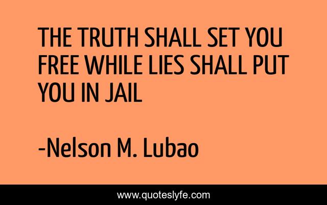 This page presents the quote "THE TRUTH SHALL SET YOU FREE WHILE LIES SHALL PUT YOU IN JAIL". Author of this quote is Nelson M. Lubao. This quote is about freedom-of-speech, speech, lying, truth,.