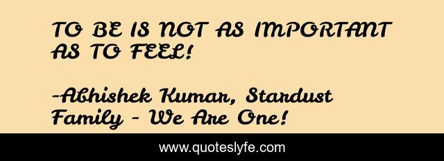 This page presents the quote "TO BE IS NOT AS IMPORTANT AS TO FEEL!". Author of this quote is Abhishek Kumar, Stardust Family - We Are One!. This quote is about abhishek-kumar, feel, feeling, stardust-family, stardustak,.