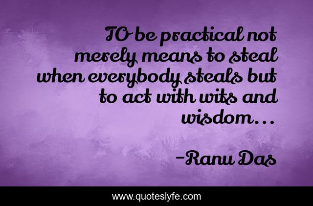 This page presents the quote "TO be practical not merely means to steal when everybody steals but to act with wits and wisdom...". Author of this quote is Ranu Das. This quote is about life, living-life, truth, ranu-das,.