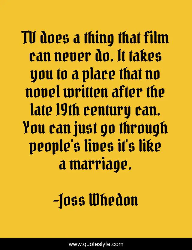 "Joss Whedon Quotes." Quoteslyfe.com, 2025. Sun. 07 Dec. 2025. <https://www.quoteslyfe.com/quote/TV-does-a-thing-that-film-can-315011>.