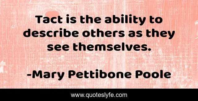 "Mary Pettibone Poole Quotes." Quoteslyfe.com, 2025. Mon. 08 Dec. 2025. <https://www.quoteslyfe.com/quote/Tact-is-the-ability-to-describe-others-267996>.