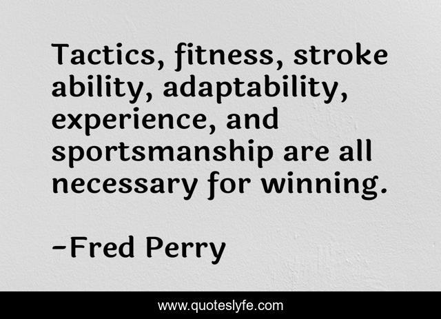 This page presents the quote "Tactics, fitness, stroke ability, adaptability, experience, and sportsmanship are all necessary for winning.". Author of this quote is Fred Perry. This quote is about fitness, ability, winning,.