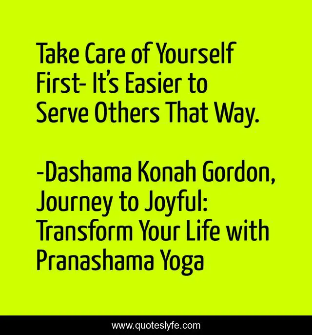 "Dashama Konah Gordon, Journey to Joyful: Transform Your Life with Pranashama Yoga Quotes." Quoteslyfe.com, 2025. Fri. 05 Dec. 2025. <https://www.quoteslyfe.com/quote/Take-Care-of-Yourself-First-It-s-148009>.