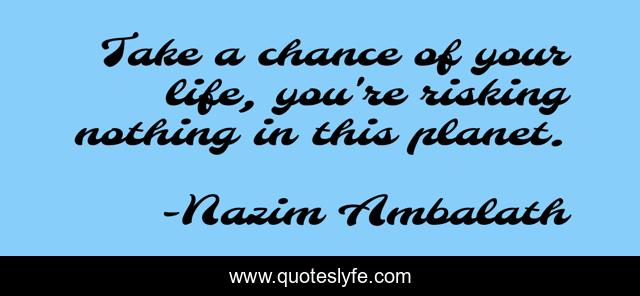 This page presents the quote "Take a chance of your life, you're risking nothing in this planet.". Author of this quote is Nazim Ambalath. This quote is about go-and-make-it, live-an-extraordinary-life, life-and-living, you-can, successful-people,.