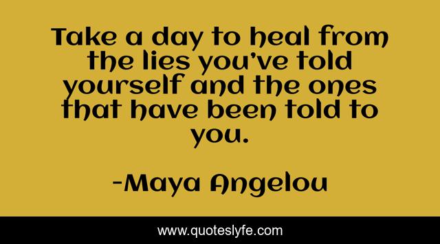 This page presents the quote "Take a day to heal from the lies you’ve told yourself and the ones that have been told to you.". Author of this quote is Maya Angelou. This quote is about quotes, maya-angelou, healing,.