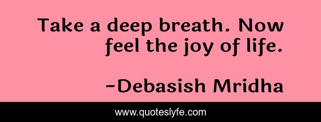This page presents the quote "Take a deep breath. Now feel the joy of life.". Author of this quote is Debasish Mridha. This quote is about philosophy, debasish-mridha, take-a-deep-breath, quotes, inspirational, enthusiasm, feel-the-joy-of-life, debasish-mridha-m-d,.