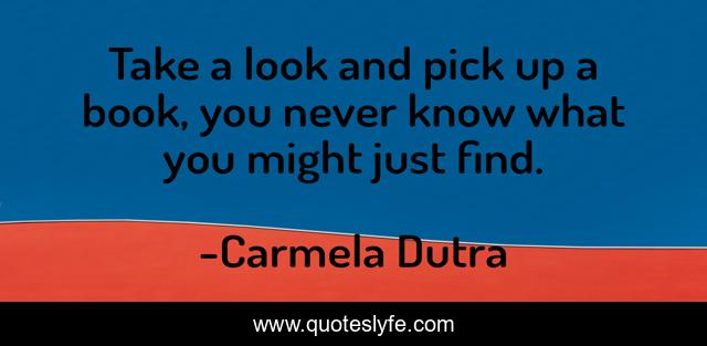 This page presents the quote "Take a look and pick up a book, you never know what you might just find.". Author of this quote is Carmela Dutra. This quote is about quote, find, book, new, books-reading, discoveries,.