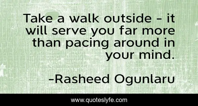 "Rasheed Ogunlaru Quotes." Quoteslyfe.com, 2025. Fri. 05 Dec. 2025. <https://www.quoteslyfe.com/quote/Take-a-walk-outside-it-will-serve-95611>.