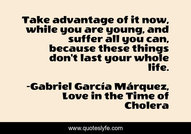 "Gabriel García Márquez, Love in the Time of Cholera Quotes." Quoteslyfe.com, 2025. Fri. 05 Dec. 2025. <https://www.quoteslyfe.com/quote/Take-advantage-of-it-now-while-you-3169>.